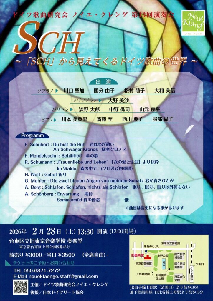 ドイツ歌曲研究会 ノイエ・クレンゲ 第13回演奏会に出演します。チケットの御希望はこのサイトのお問い合わせより承ることができます。